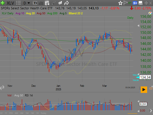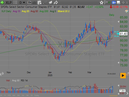 You see how consumer discretionary, which usually outperforms SPY and XLP in a bull market, made a new lower high in February. And when XLY sold off in February, XLP was bought, and even made a higher high at the end of February. That indicates that big money is flowing into defensive assets within the consumer sector. Healthcare also cleared the December highs — and even earlier, in late January: