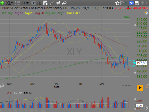 - XLY (consumer discretionary – people avoid to buy new cars or upgrade computers in bad economic situation)