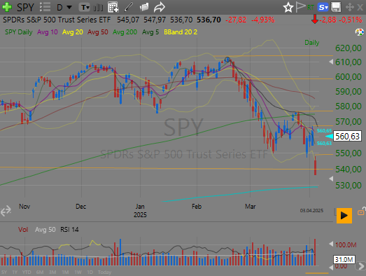 Take a look at the SPY chart — the sell-off started in mid-February 2025, caused by anticipation of trade wars in 2025. You can clearly see that the bear market started well before Trump held the press conference with that reciprocal tariffs table on the 2nd of April, 2025.