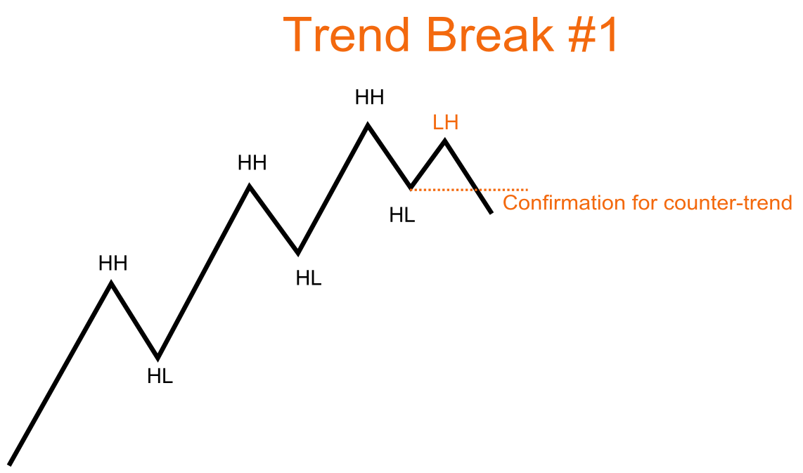 Let’s assume the market is always in either a trend or a range. Based on this assumption, a trend can break in two ways: it can transition into a range, or it can reverse directly into a counter-trend.